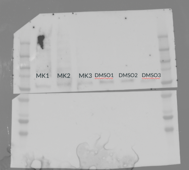 The western blot also functioned to confirm the identity of present proteins. It is known that C-Myc’s molecular weight is 62 kilodaltons (kD). In Figure 1, the protein ladder aligns at the point corresponding to a weight of roughly 60 kD, identifying the protein as C-Myc.